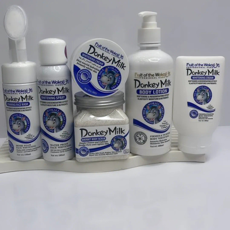 پک 6 تکه سفید کننده شیر الاغ :محصولی است که از شیر الاغ به عنوان یکی از ترکیبات اصلی برای روشن کردن و سفید کردن پوست استفاده میکند. این محصولات معمولاً خاصیت آبرسانی، مرطوب کنندگی و تغذیه پوست را نیز دارند و برای انواع پوست مناسب هستند. مزایای پک که سفید کننده شیر الاغ: روشن کننده و سفید کننده:شیر الاغ حاوی اسید لاکتیک است که به روشن شدن پوست و از بین بردن لکهای تیره کمک میکند. آبرسان و مرطوب کننده:این کرم با حفظ رطوبت در لایههای عمیق پوست، خشکی و زبری را از بین میبرد. ضد پیری و جوان کننده:شیر الاغ حاوی مواد مغذی و ویتامینهایی است که به تحریک کلاژن سازی و کاهش چین و چروک کمک میکنند. مناسب برای انواع پوست: فرمولاسیون این کرم به گونهای است که برای انواع مختلف پوست قابل استفاده است. دارای مواد مغذی:شیر الاغ سرشار از ویتامینها و مواد مغذی است که به تغذیه و ترمیم پوست کمک میکنند. اثر دائمی با استفاده مداوم: با استفاده منظم، این کرم میتواند به روشن شدن دائمی پوست کمک کند. شامل کرم سفید کننده بدن ، کرم سفید کننده دست و صورت،اسپری سفید کننده ،لوسیون بدن ،فوم شستشوی صورت براشدار و اسکراب لایه بردار و سفید کننده پوست .